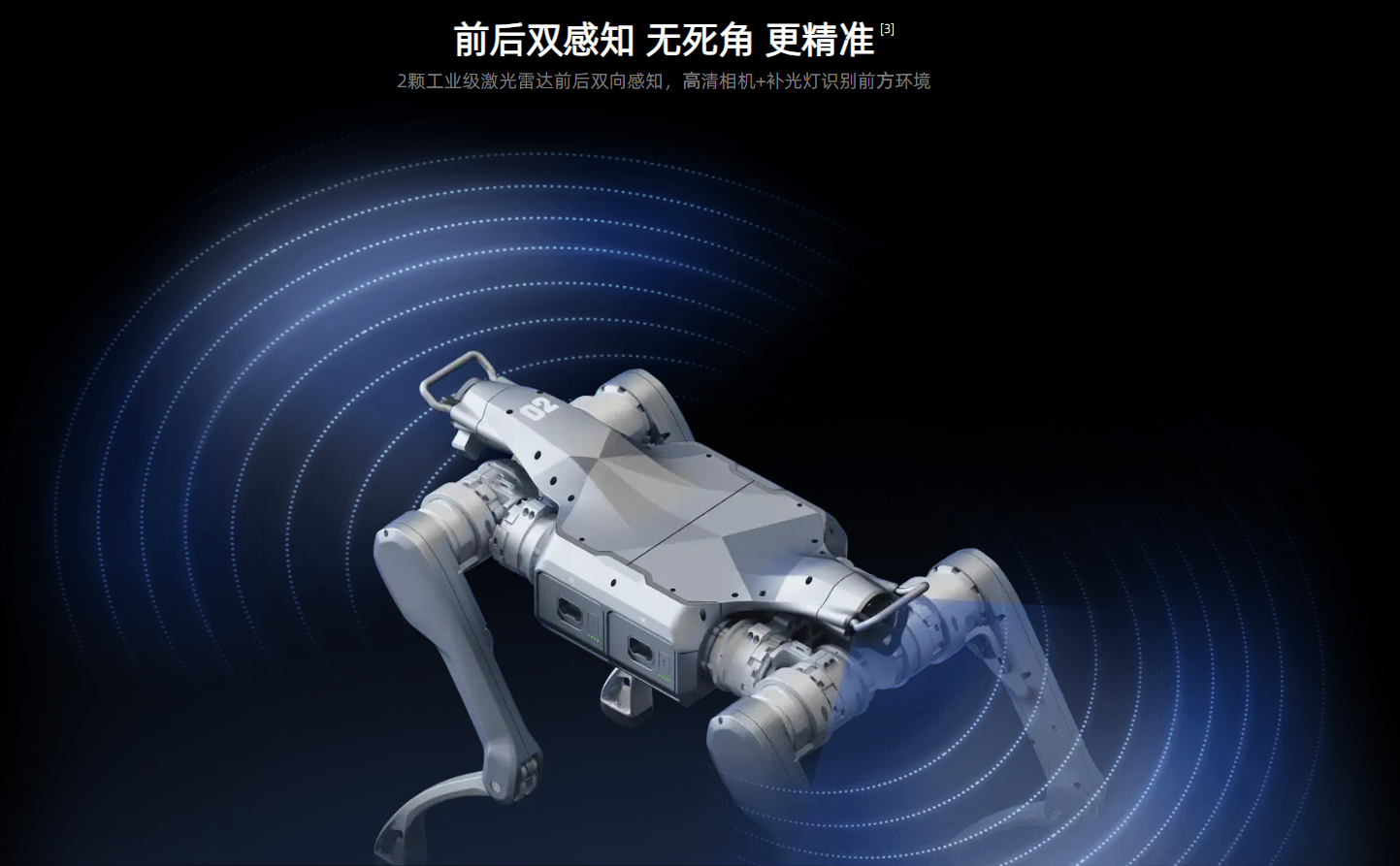 为了在复杂场景中实现精准导航与避障,A2 搭载了 “双激光雷达 + 高清摄像头 + 前置照明灯” 的感知系统。前后双工业级激光雷达实现 360° 无死角环境扫描,配合高清摄像头的细节捕捉能力,即使在暗光环境下,前置照明灯也能照亮前方细节,确保机器人对地形、障碍物的实时精准判断。