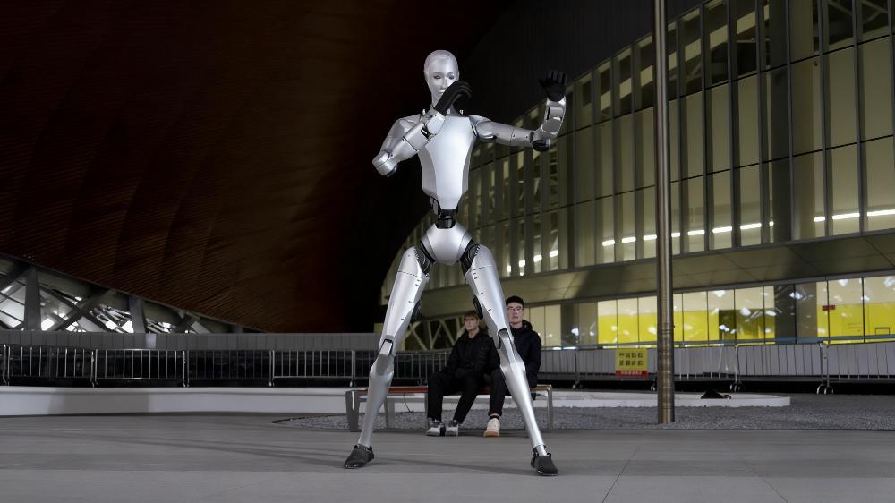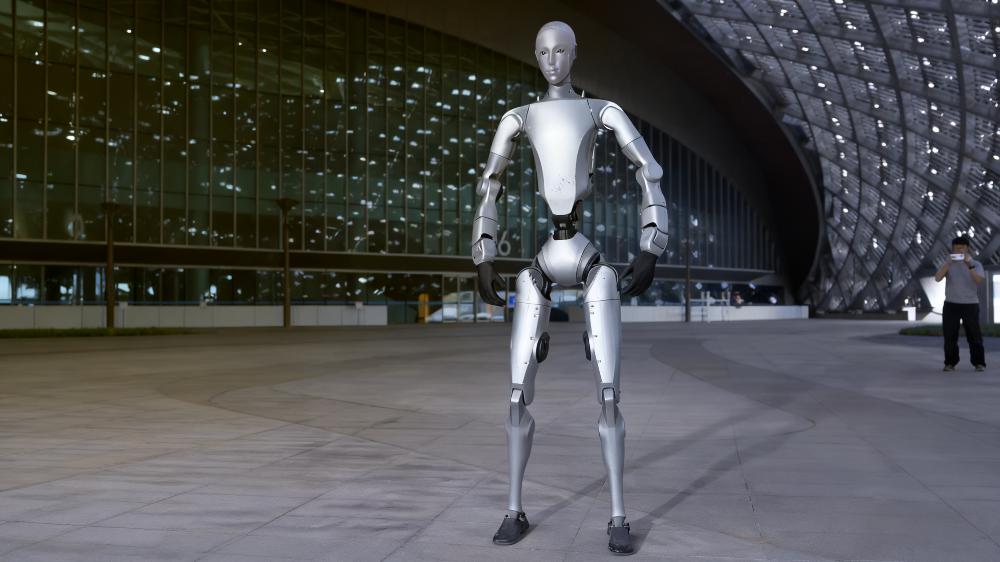 宇树H2是宇树科技推出的全尺寸高性能仿生人形机器人,也是2026年春晚义乌分会场悟空机器人的核心原型,凭借顶尖的运动性能与拟人化表现,成为国产人形机器人的代表之作。该机器人身高1820mm,带电池重约70kg,机身采用航空铝+钛合金+高强度工程塑料打造,兼顾轻量化与结构强度。整机搭载31个高精度关节,单腿、单手臂分别配备6、7个自由度,腰部和头部也具备灵活的活动能力,关节采用低惯量高速内转子永磁同步电机与工业级交叉滚子轴承,腿关节峰值扭矩达360N.M,手臂峰值扭矩120N.M,手臂峰值负载15kg、额定负载7kg,能完成高难度、高精度的肢体动作。可广泛适配文旅演艺、工业巡检、科研开发等多元场景,是兼具实用性与开发性的人形机器人产品。