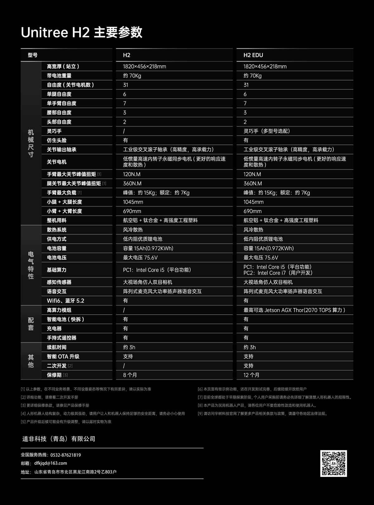 | 头部自由度 | 2 | 关节电机 | 低惯量高速内转子永磁同步电机(更好的响应速度和散热) | |